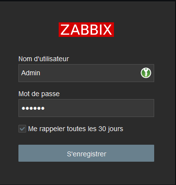 - Utilisateur: Pour ma part zabbix
