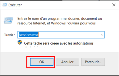 Vous pouvez maintenant faire le raccourci CTRL+R et tapez la commande « services.msc ».