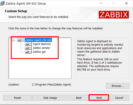 - Zabbix Server IP / DNS : Entrez l’adresse IP du serveur Zabbix. Le service d’agent permettra uniquement les demandes de ce serveur Zabbix.