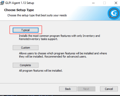 Lancez l’installeur .MSI faites « Next » plusieurs fois et lorsque vous atteindrez cette étape de l’installateur, choisissez une installation de l’agent en mode « Typical ».