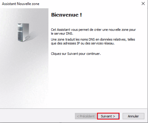 Vous allez ouvrir l’assistant de nouvelle zone et sur la première fenêtre, vous allez pouvoir faire « Suivant ».