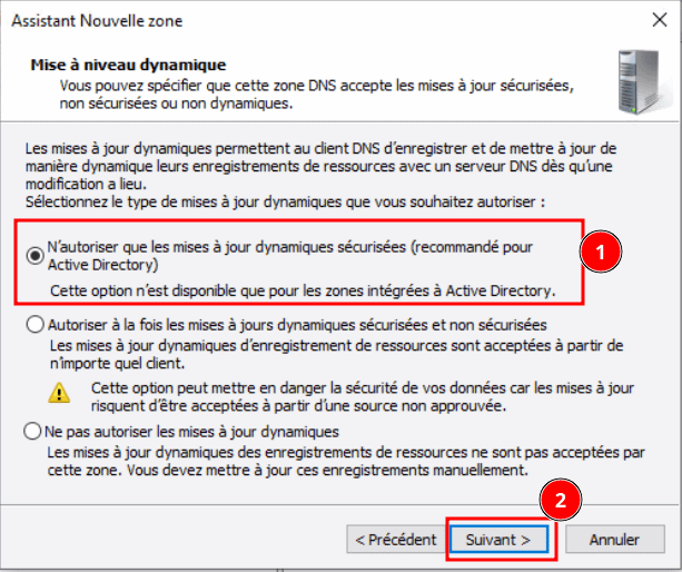 Vous pouvez laisser « mise à niveau dynamique sécurisées » et « Suivant ».