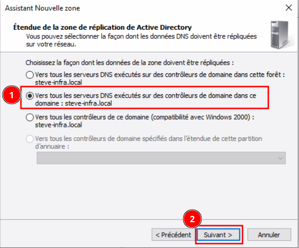 Ensuite, laissez l’option par défaut pour définir la zone de réplication de votre sous-domaine et faites « Suivant ».